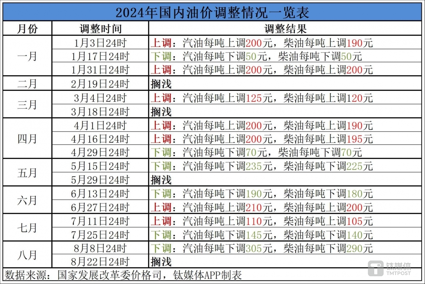 本轮油价调整是今年以来的第17次调整,也是三季度的第4次调整,此前7月25日、8月8日油价均下调。而本周期内按照国际原油变化率计算,油价上调幅度应为25元/吨,低于调价最低标准线,因此出现了三季度的首次搁浅。