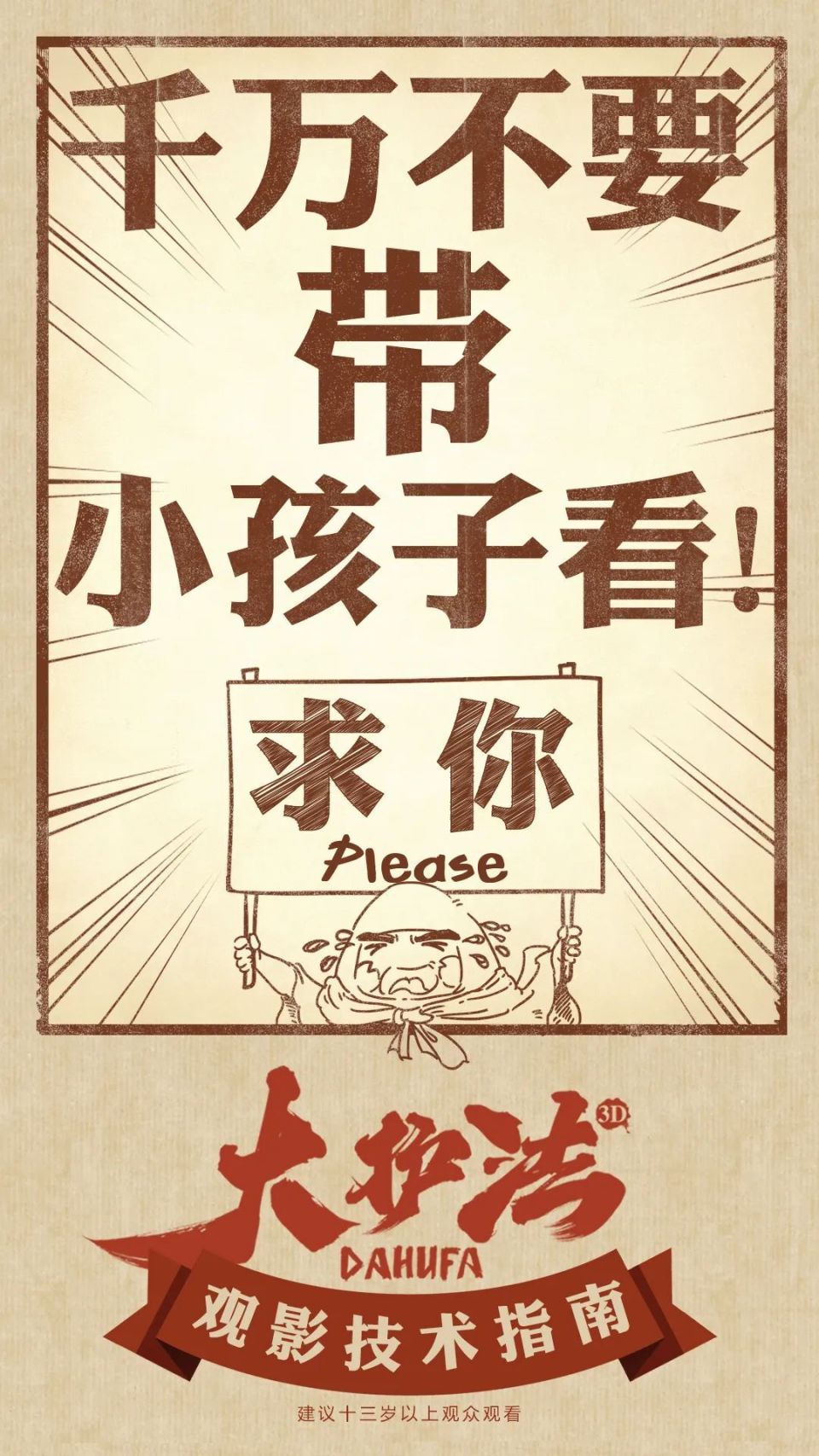 这种“明确提示”一直到现在都是大多数电影会采取的方式,用软性的观影提示功能替代分级制度的硬性区隔,甚至,片方也会在宣传海报上提前进行自我分级。国内首部自主分级的电影《大护法》从预告片到海报,处处标注该片不适合13岁以下儿童观看。