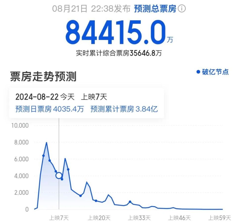 上映一周,《异形:夺命舰》的预测票房从第一天的2.38亿,涨到了现在的8.44亿。