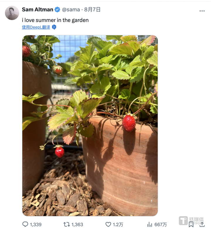 本月初,奥尔特曼在推文上发布了一张“草莓”图片,但他没有详细说明,这引发了人们对即将发布“草莓”模型的猜测。据一位直接了解这些会议的人士称,OpenAI 今年夏天还向美国国家安全官员演示了“草莓”。