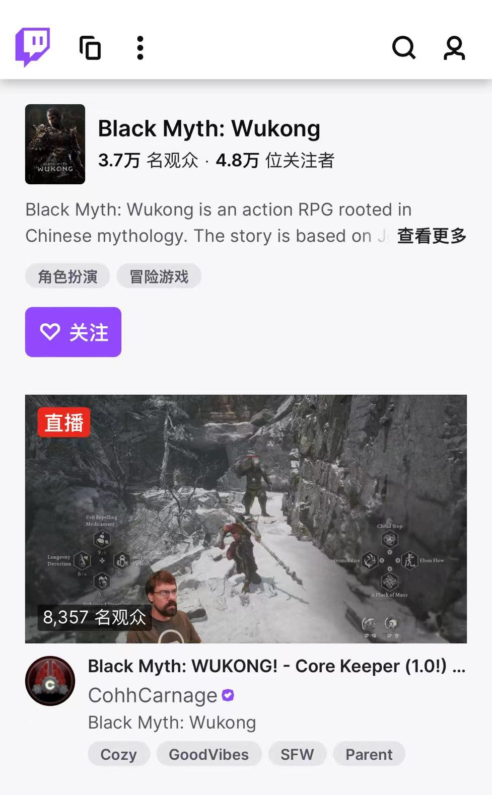 而海外最大游戏直播平台Twitch上,也诠释着何为“没日没夜”的黑神话。(美国时间晚10点),约有5万名在线观众围观《黑神话:悟空》相关直播,而美国时间早9点,仍有超3.7万名观众围观《黑神话:悟空》游戏直播。