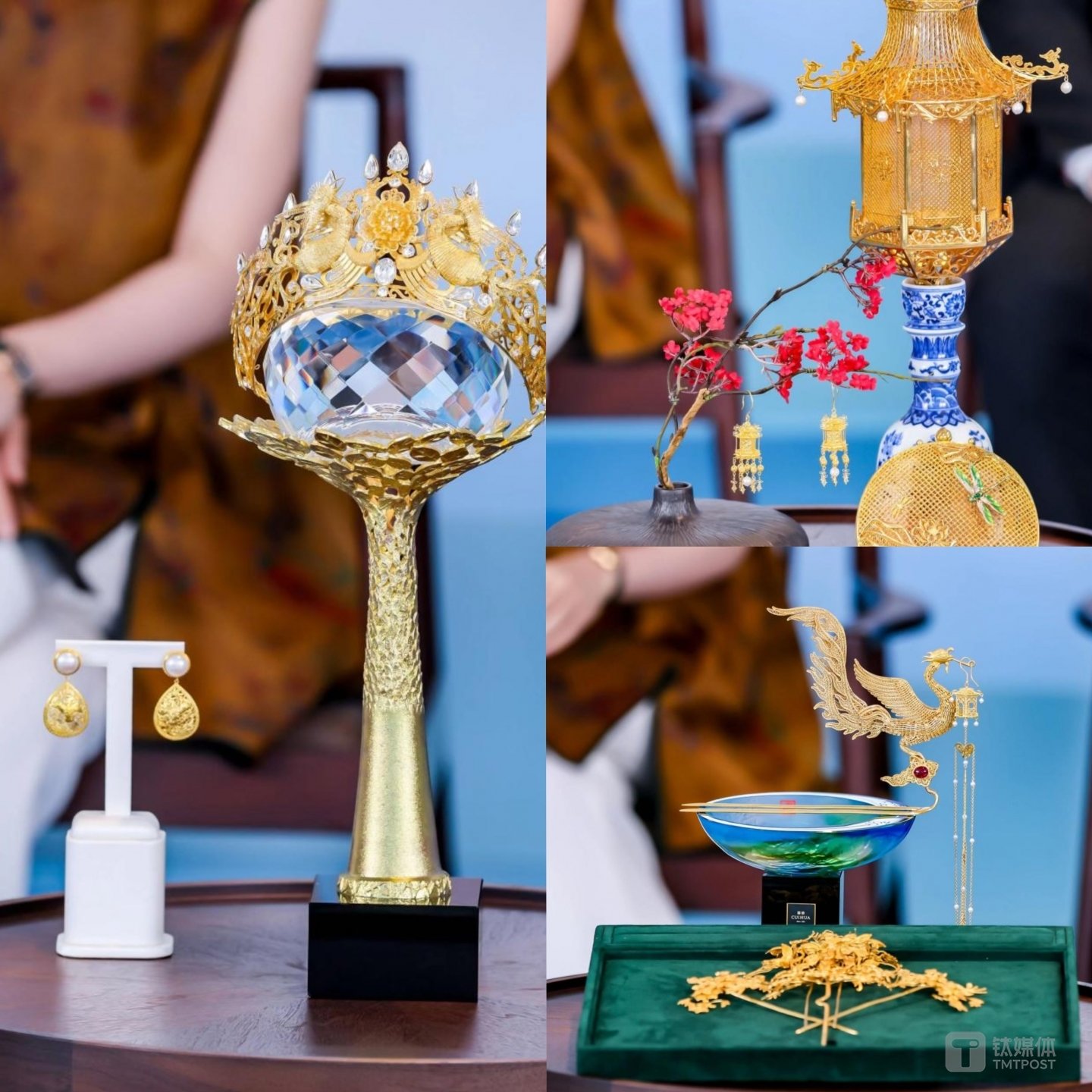 金秋深圳,“金色引擎”已全部就绪,一触即发。罗湖区委常委、区委(政府)办主任赖建华,深圳市萃华珠宝首饰有限公司首席设计师、设计总监郭夷锬,深圳珠宝博物馆馆长王振,周大生珠宝股份有限公司董事副总裁郭晋,以及深圳市黄金珠宝文化研究会会长曹阳齐聚深圳含“金”量最高的水贝产业园区,进行了一场别开生面的政企对话,此次对话主要是围绕黄金的发展、研发设计、科技创新等多个角度进行了探讨,并在现场展示了3件精美绝伦的黄金宝物(《凤凰于飞》、《螭龙宫灯》、《天作之合》),透视了中国黄金珠宝产业发展的新未来、新机遇。