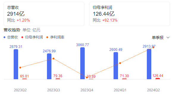 京东发布的 2024 年半年度业绩报告显示,京东集团上半年净利润达到 145 亿元,同比增长 69.0%,净利飙升近七成!净利润率首次达到5.0%,大幅超出市场预期。