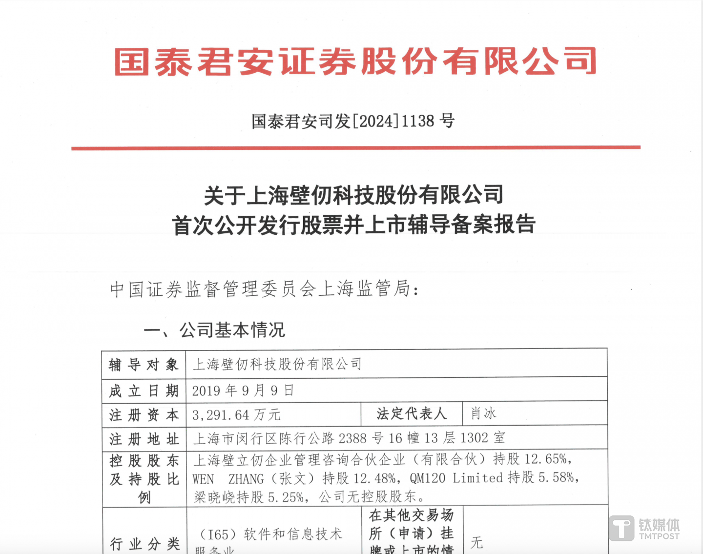 钛媒体AGI获悉,9月12日,据中国证券监督管理委员会官网显示,上海壁仞科技股份有限公司(壁仞科技)提交“首次公开发行股票并上市辅导备案报告”,即壁仞科技启动科创板IPO上市辅导,辅导机构为国泰君安证券股份有限公司,辅导签署时间是2024年9月10日。