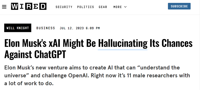 但彼时对于xAI,外界多持观望态度。毕竟它起步晚,规模也小。在OpenAI和微软之外,赛场上还有谷歌这样的巨头,以及Anthropic这样的明星初创企业。xAI不仅只有11位初始成员,理念上也天然排斥科技巨头的大笔投资注入。包括《连线》在内的一些知名媒体,讽刺xAI挑战OpenAI更多是马斯克的一种“幻觉”。