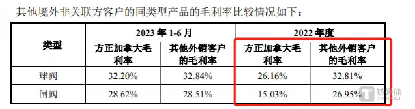 可见,2022年方正阀门销售产品至方正加拿大与其他外销客户之间的毛利率相差巨大,方正阀门存在让利行为。为何方正阀门在退出方正加拿大之后,要给予方正加拿大如此大的让利?