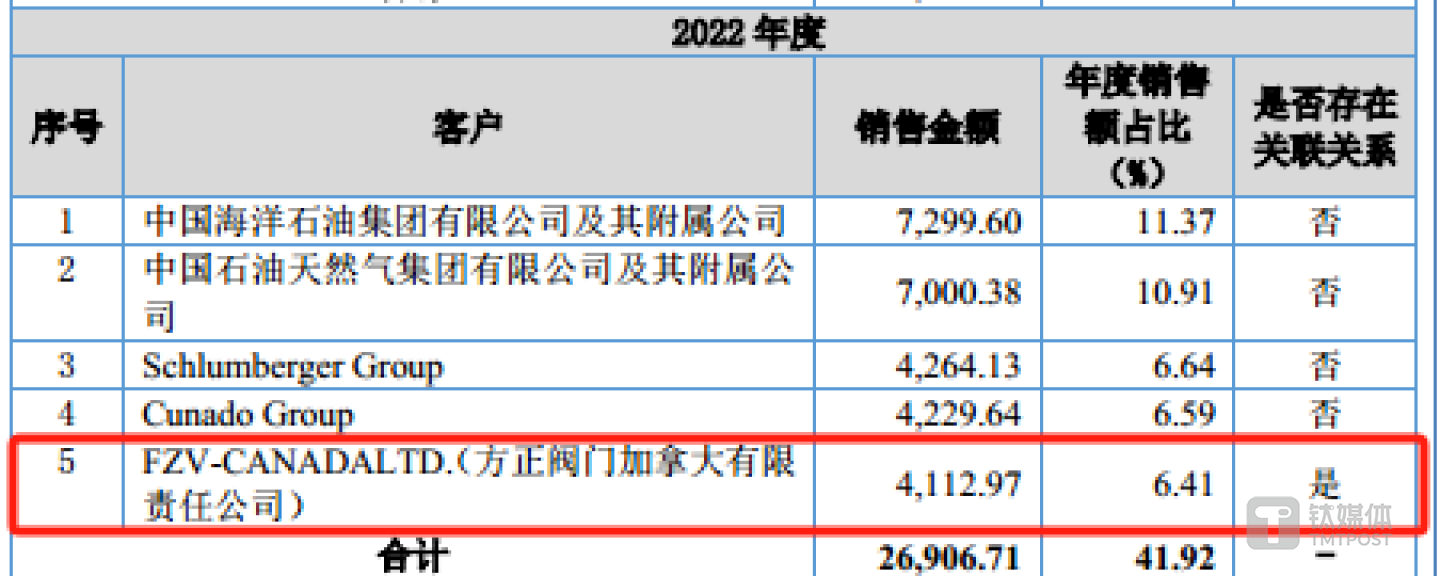 钛媒体APP注意到,在方正阀门的前五大客户名单,有一位客户特别值得关注,它就是FZV-CANADALTD.(方正阀门加拿大有限责任公司,下称“方正加拿大”)。