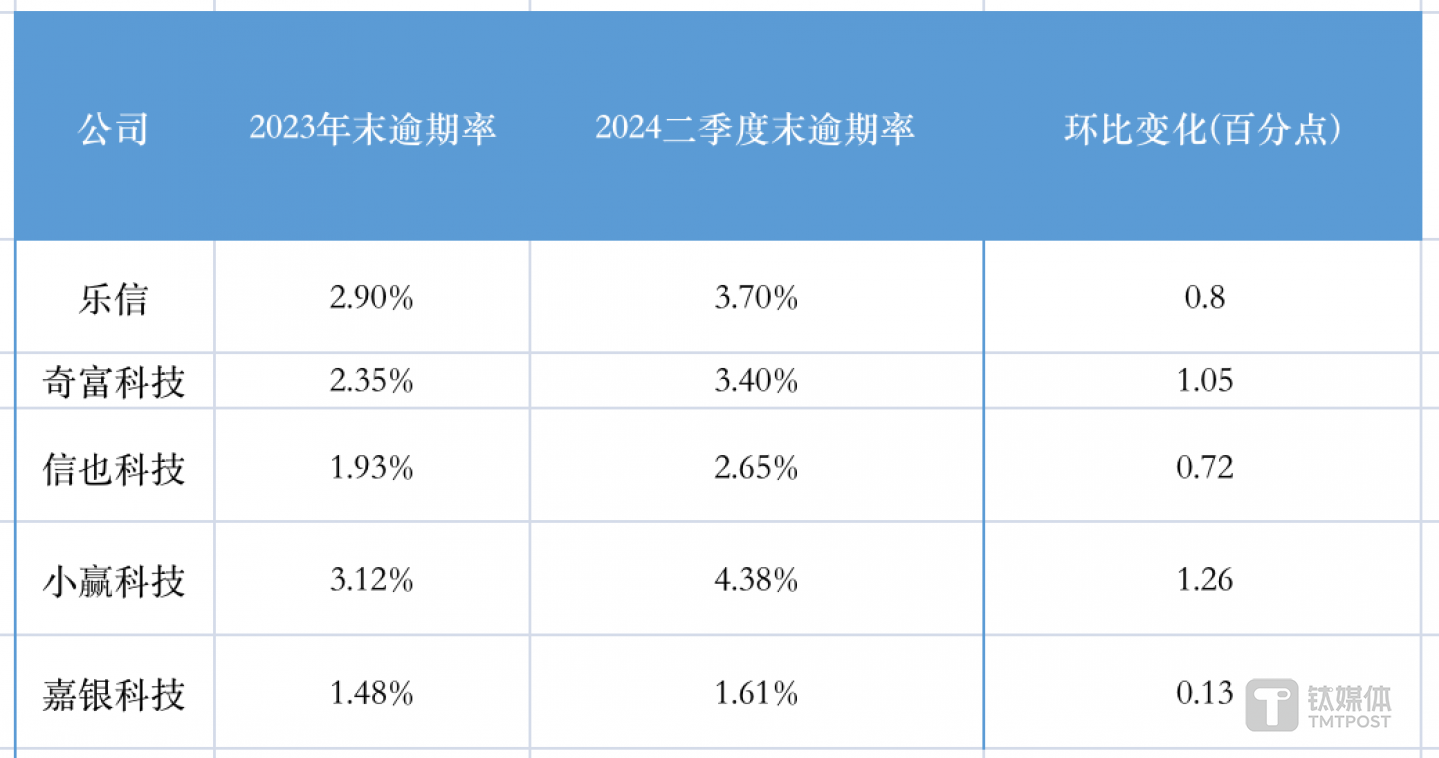 钛媒体App统计,以上几家公司的90天以上的逾期率均出现较为明显的走高。抬升幅度最大的是小赢科技,相比2023年末大幅度提升了1.26个百分点。