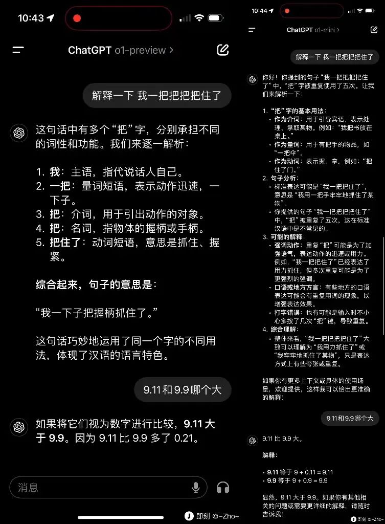 曾经AI对话因回答错“9.11还是9.9大”被热议,现在国内各家都迭代了多代大模型,文心、豆包、Kimi等都能答对这道简单的数字题。但是OpenAI新更新的o1模型却还是沉迷自己不知名的逻辑怪圈里,找不到正确答案。![]()