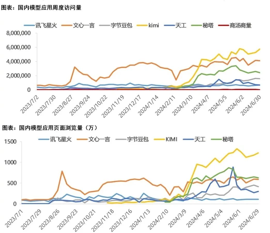 Kimi抓住用户这一痛点,主打长文本和文档处理两个功能,能帮用户快速抓取文档重点,取得了还不错的用户体验。据AI数智源发表的8月国内AI榜单来看,Kimi仍以22.85M的数据领先其他家。但是实际上Kimi预训练较弱,模型本身能力并不强。但正是抓住了有效场景,Kimi的数据稳居国内大模型前列。![]()