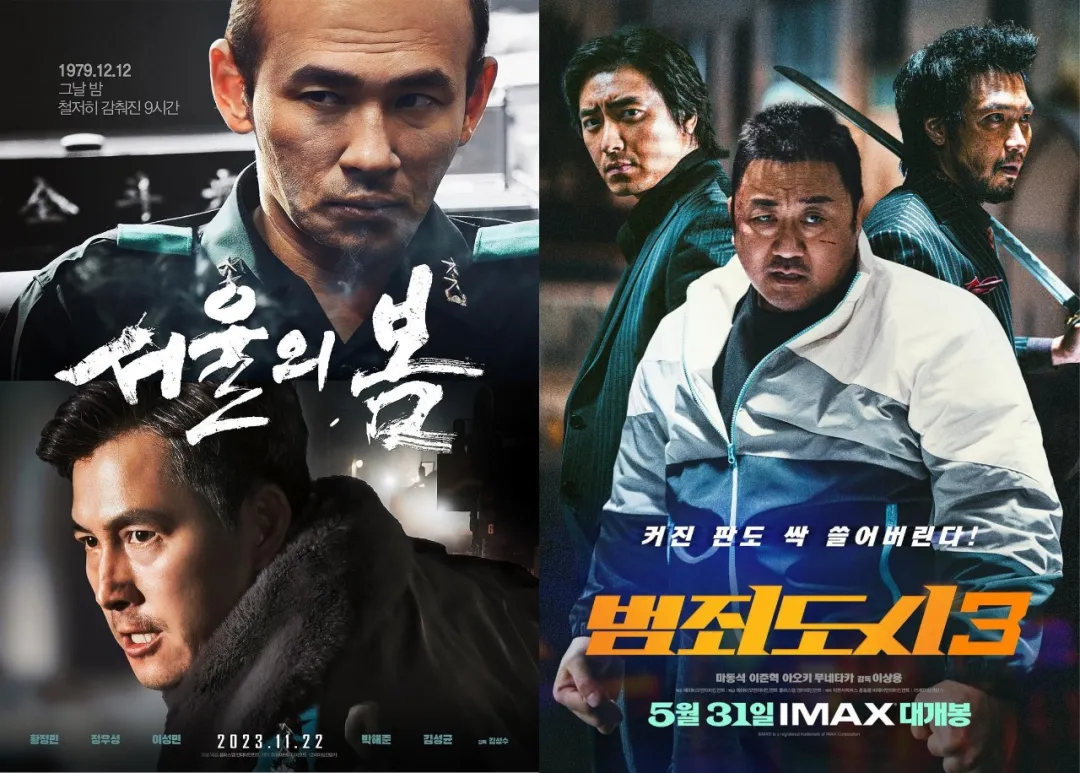 从内容上来说,动作类商业大片和带有明显民族情绪的商业大片,更有票房号召力,渐渐成为市场主流。动作场面占了大部分的《犯罪都市》系列,累计观影人次突破4000万,创韩国影史纪录,现在该系列正计划开发到第8部,而带有明显民族情绪的《首尔之春》《破墓》在淡季上映,均破千万人次,成为市场黑马。