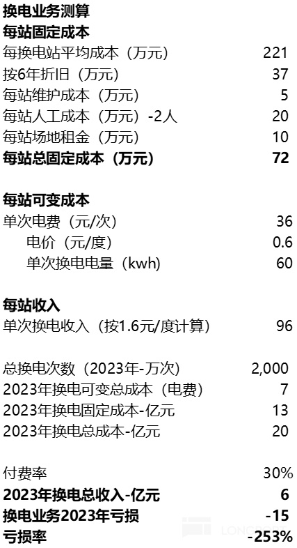 而蔚来由于充电桩对第三方车企开放,但换电站仅对蔚来车主开放,可以推测12亿中可能大部分都来自于充电桩充电的收入,而换电业务真实2023年的收入可能不足6亿。