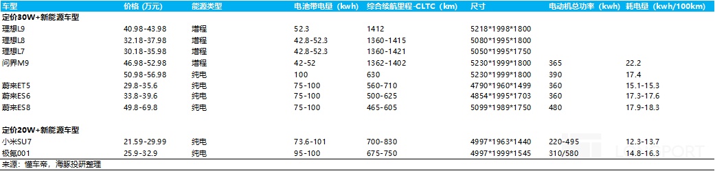 但30万以上价格带用户需求更加多元化:需要兼顾多孩家庭日常出行、户外越野场景、高端商务接待等, 而高端纯电车的续航“bug”更加明显,导致高端纯电动车的场景适用范围比插混车更窄。