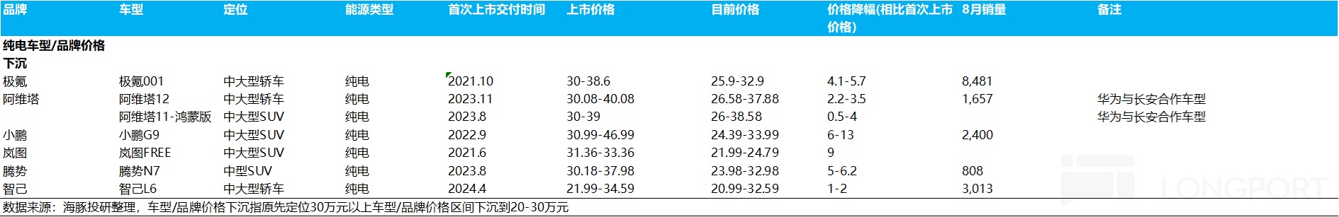① 从行业层面来看,高端纯电难出爆款,纯电车企纷纷选择价格下沉,蔚来面临的高端纯电市场竞争减弱: