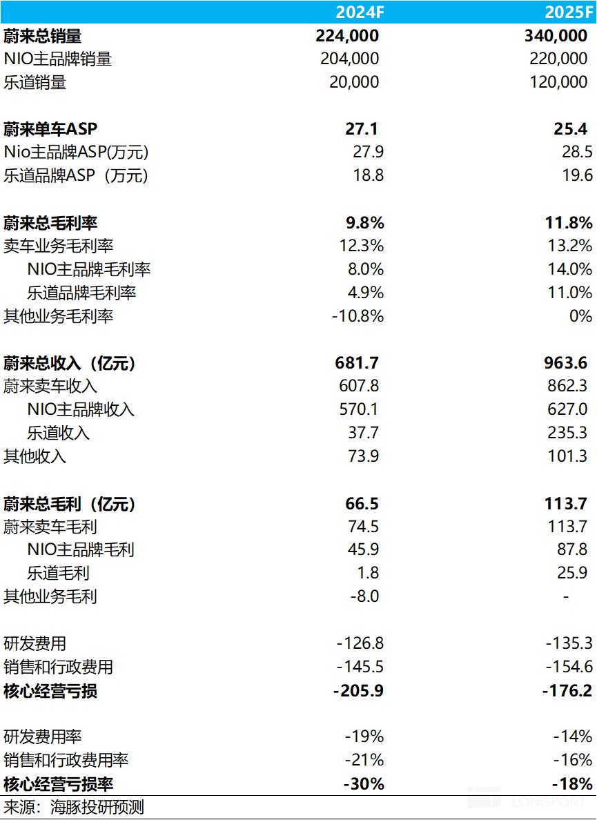 而据管理层预计,蔚来主品牌2025年的年销量将达到25万辆,相当于月销2万辆左右,基本与蔚来目前的月销量趋势持平,也和海豚君的判断一致。