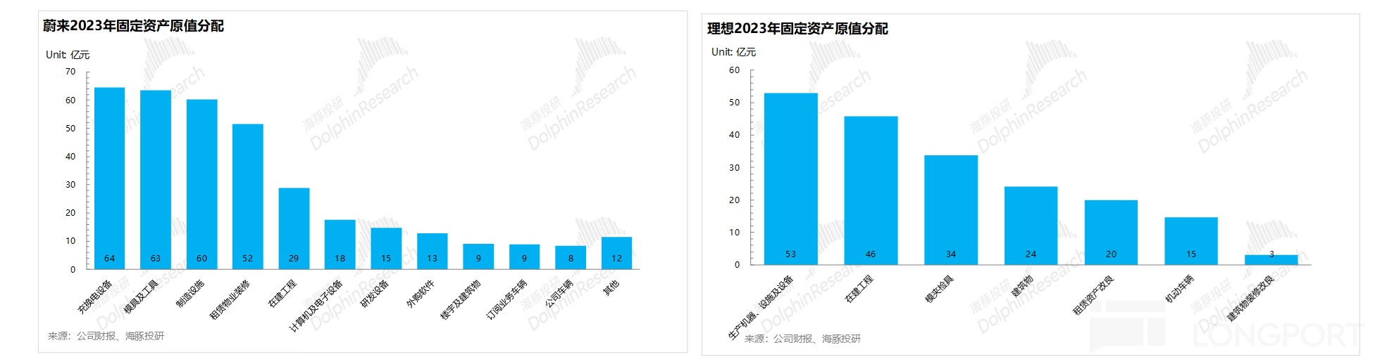 而对比蔚来和理想的固定资产结构: