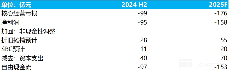 蔚来2025年的经营亏损虽然相比2024年会有所收窄,但仍然有近170-180亿的亏损,经营亏损率随着毛利率端的提升以及经营费用端杠杆效应的释放,预计从2024年-30%缩窄到2025年-18%。