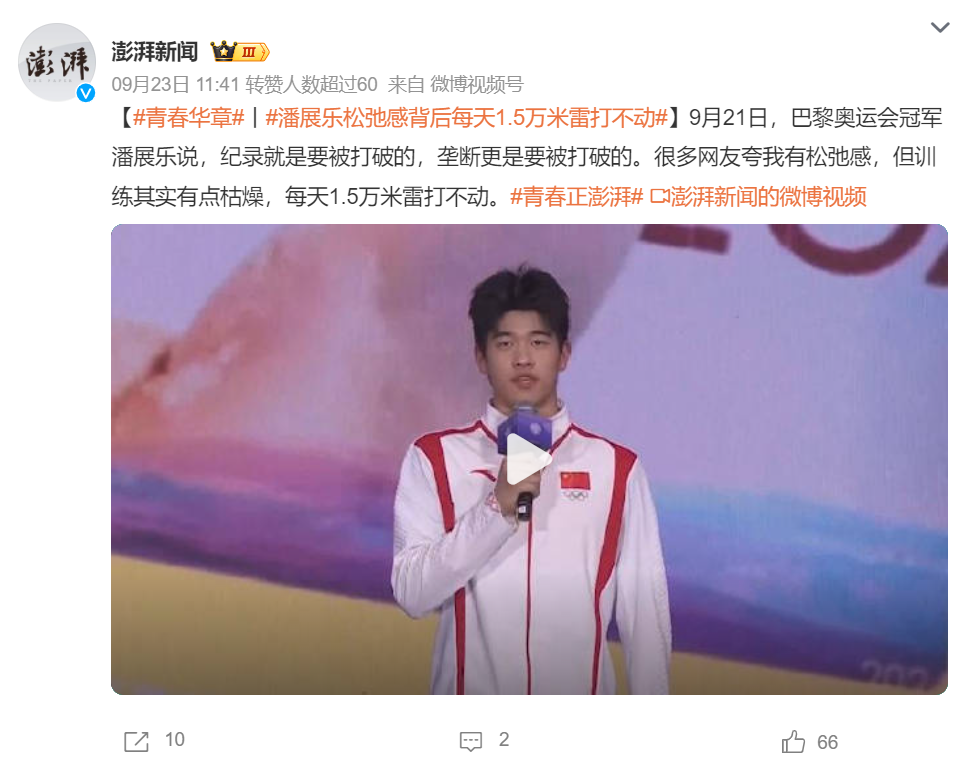 而且,这届00后运动员身上是真有“梗”。作为互联网和社交媒体的“原住民”,他们愿意并且敢于在镜头前展示自己,前有“阿条姐”“干饭哥”,后有“爱告状的”潘展乐,以“非传统方式”走红社交平台成为00后运动员的常态。