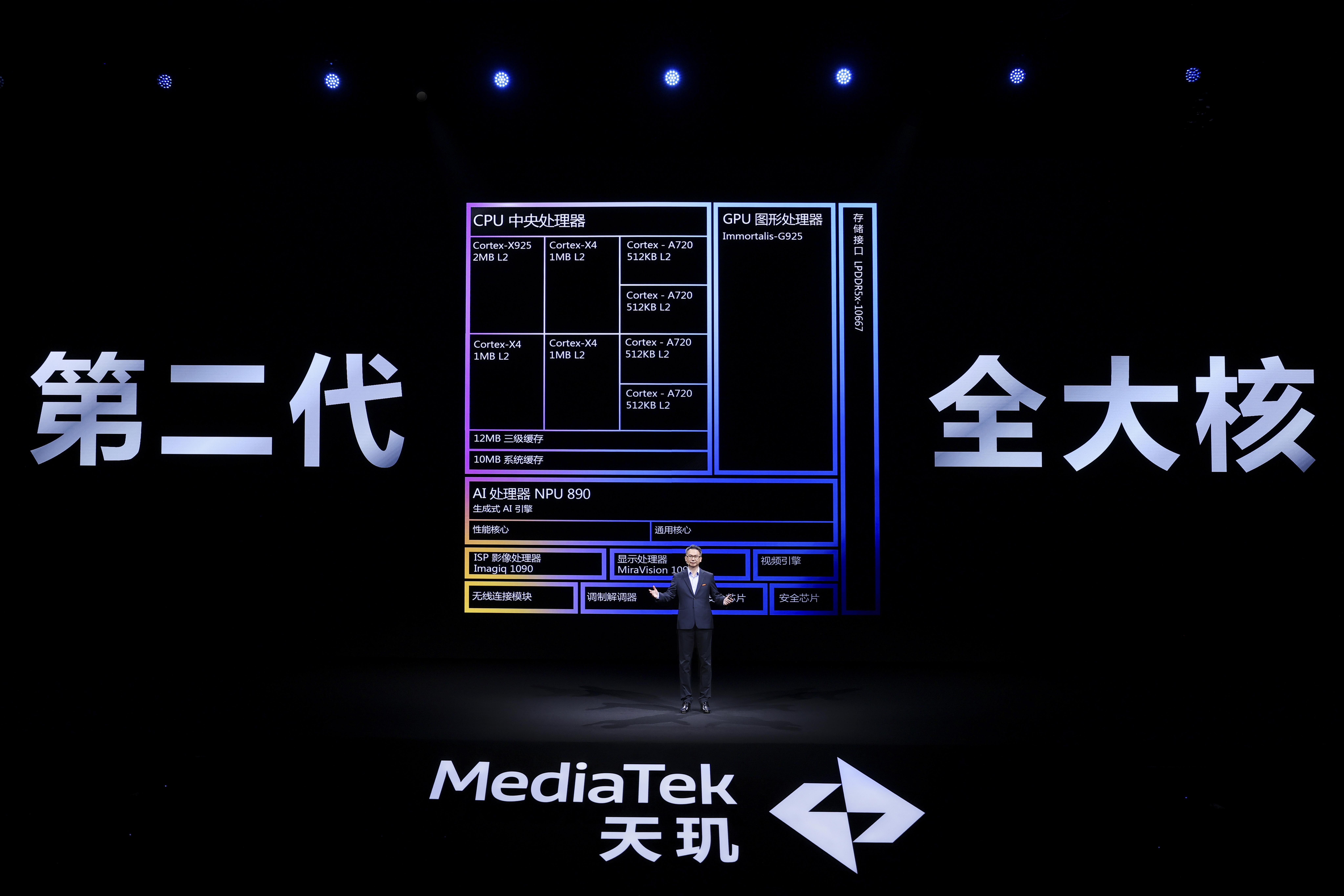 因此,天玑9400沿用了“全大核”设计,1+3+4的核心配置更充分满足高性能需求和日常低负载等多种不同场景间的灵活切换。与此同时,第二代3nm制程、最新一代Arm v9.2微架构以及更高频内存的支持,也确保了天玑9400能够在能耗比、峰值性能、低延迟等方面拥有出色的表现。