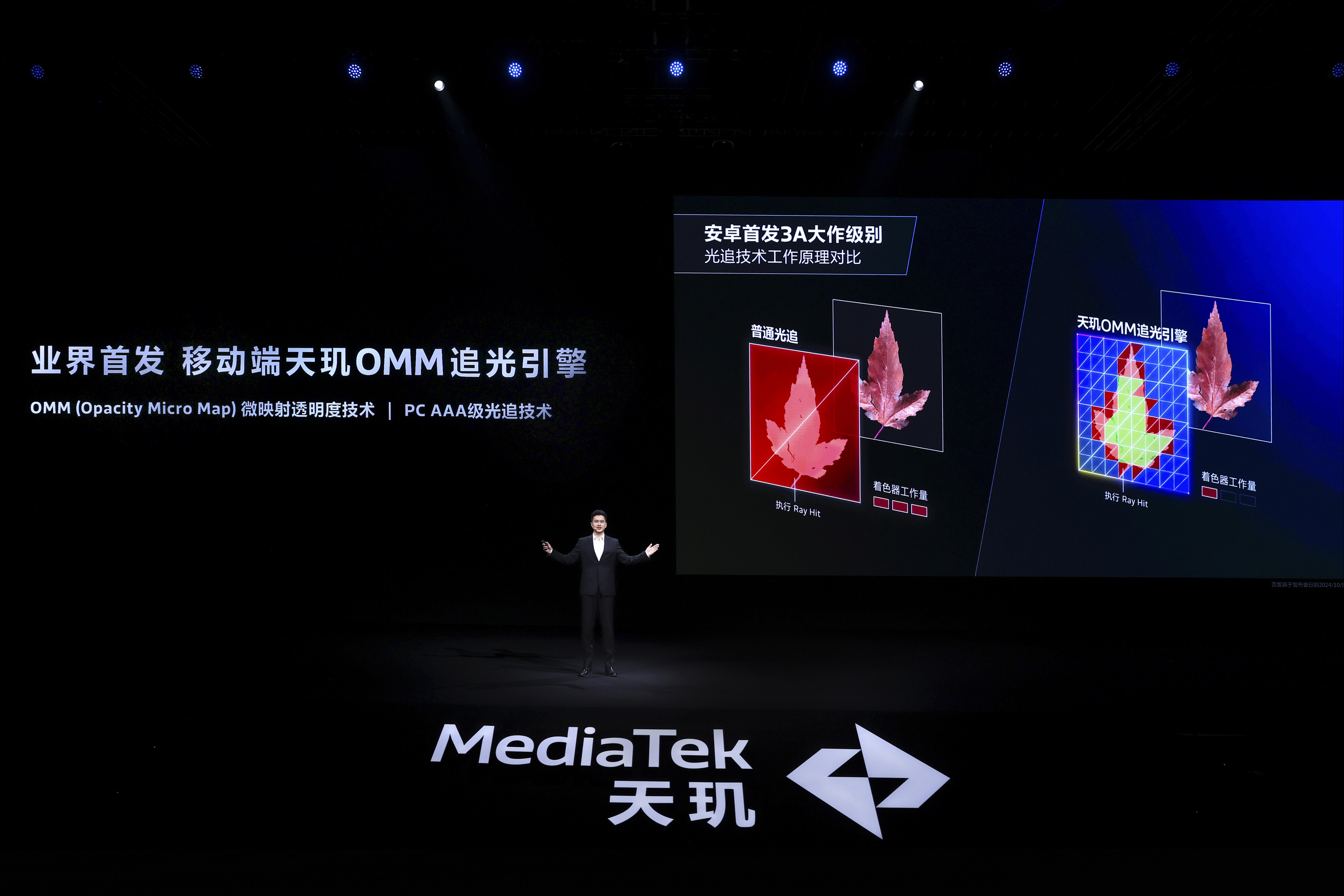 算法层面,联发科也为天玑9400带来了全新的“OMM追光引擎”黑科技,它应用了与最近很火的国产3A游戏《黑神话:悟空》相同的技术逻辑,通过优化对光影细节的渲染能力达到降低性能占用、提升帧率的目的。