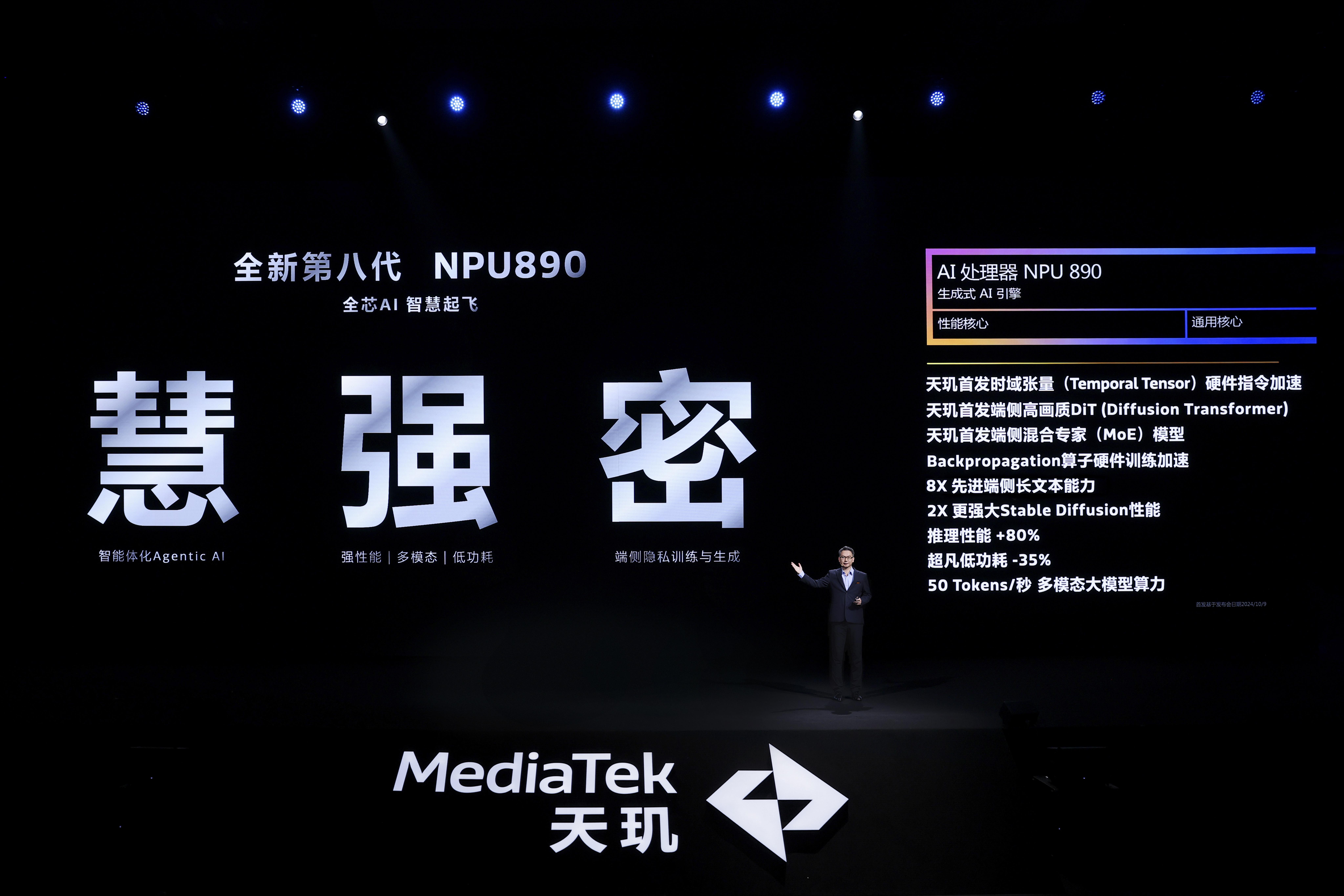联发科也随着天玑9400的发布,向行业、厂商和用户揭晓了答案,那便是“打造专属于个人的智慧体验”。提供智慧体验的平台基础,自然是AI能力和AI算力,天玑9400内置第八代NPU处理器890,推理能力提升80%、功耗降低35%的同时,具备50T(Tokens/s)的多模态处理能力,最终使得其相对前代芯片,AI性能跑分超过6700分。