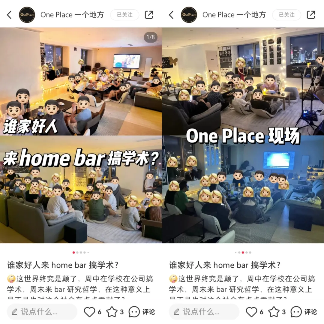据《后浪研究所》报道,One Place瞄准的客群是有社交需求的沪漂,但又不是酒吧常客,想社交却又不敢社交,主要目的就是解决这些沪漂的社交需求,帮助他们交友。One Place的主理人阿one也在2023年6月辞职正式做起Homebar。而现在,One Place已经开出两家门店,算是成为了一个“连锁品牌”。