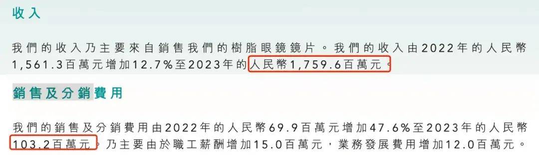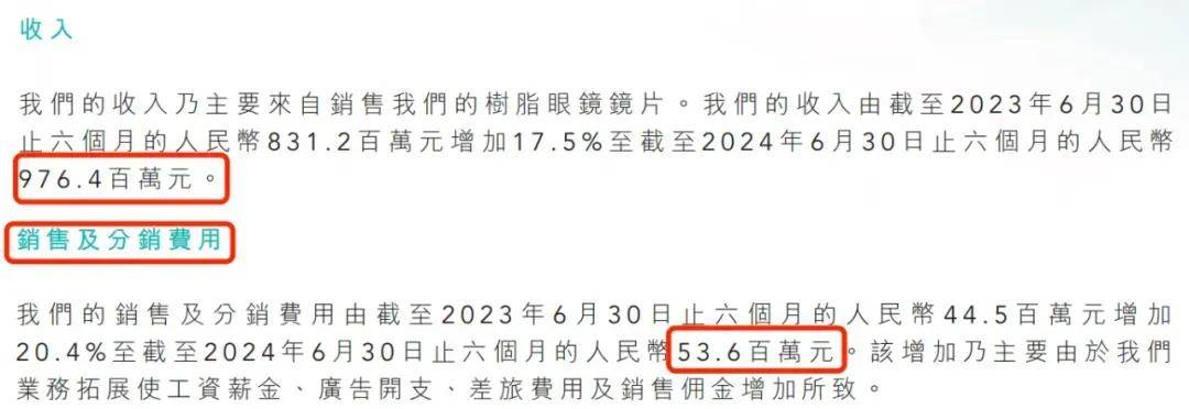 而公司的竞争对手之一康耐特光学(2276.HK),2023年和2024年上半年的销售及分销费用分别为1.03亿元、5360万元,收入分别为17.6亿元、9.76亿元,销售及分销费用占当期营业收入的比例为5.86%、5.49%,远低于明月镜片。