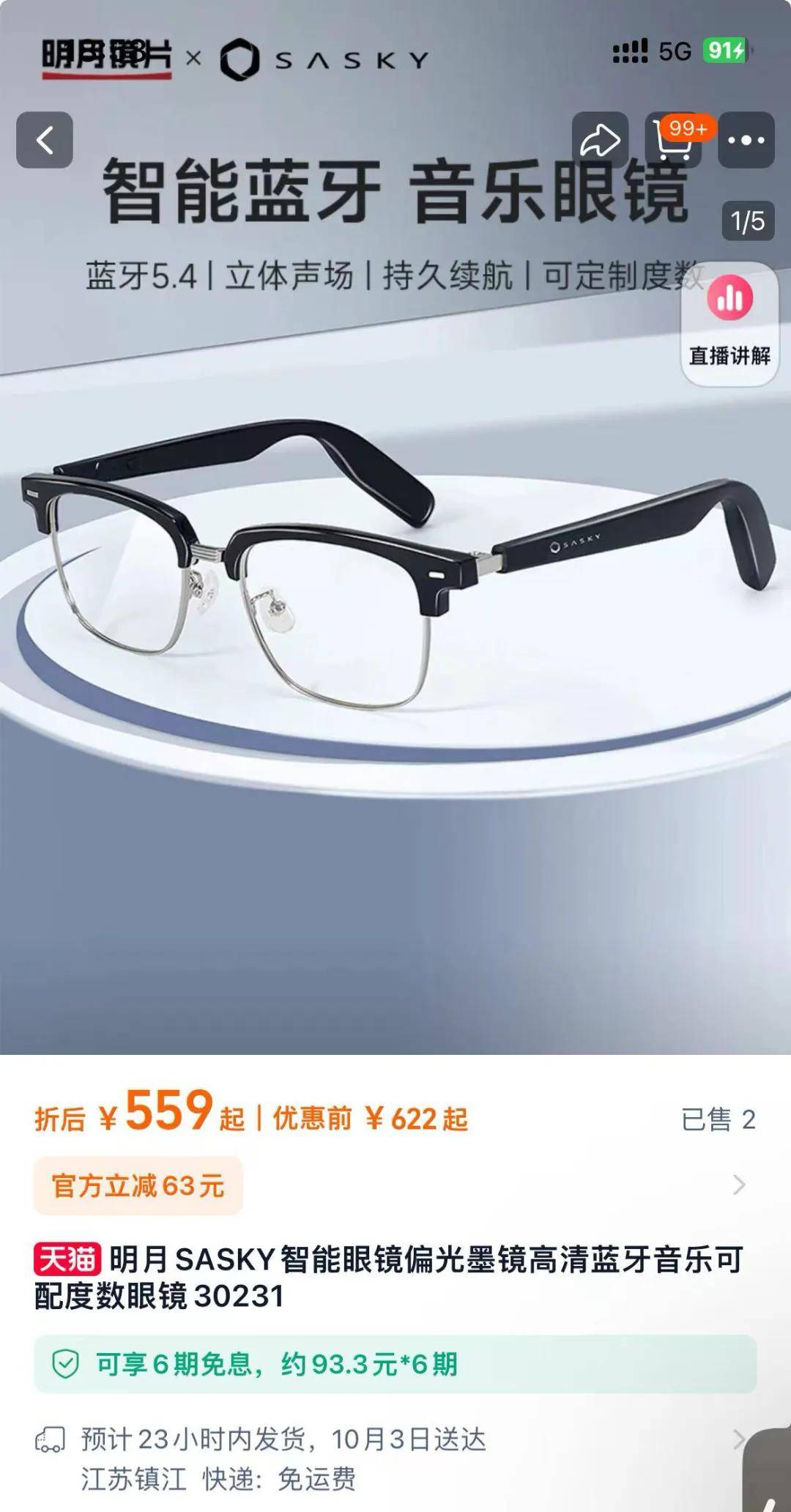 但是和Meta Ray-Ban相比,sasky的“AI智能度”尚有差距,消费者对sasky也并不买账。明月镜片天猫旗舰店显示,sasky售价为559元起,仅售出2副。