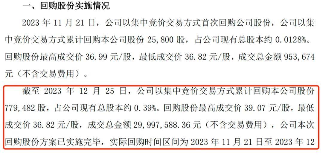 2023年10月,明月镜片提出上市以来的首次股权回购计划。同年12月25日,明月镜片股份回购计划完成,公司累计回购股份77.95万股,占公司总股本约0.39%,成交总金额2999.76万元。