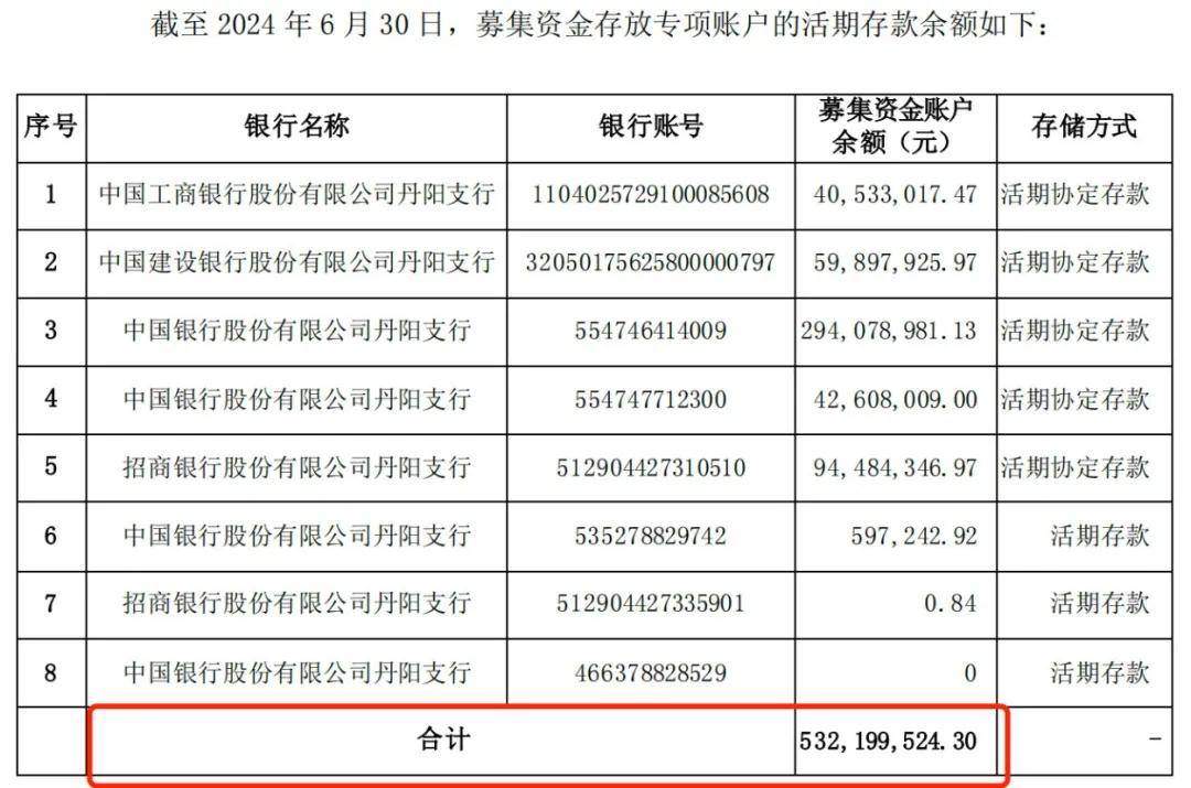 可见,上市近三年的明月镜片,在IPO时预计投资的项目均没有顺利完成。公告显示,截至2024年6月30日,明月镜片募集资金账户余额5.32亿元,均放在银行账户中吃活期利息。