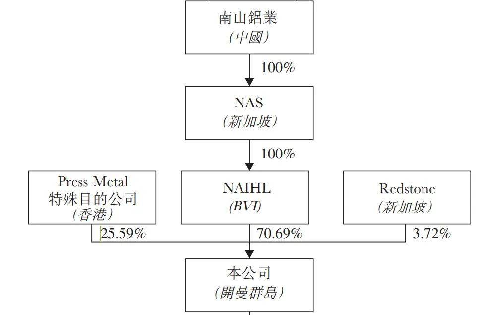 IPO前,Press Metal持有南山铝业国际25.59%股权,持股比例仅次于控股股东南山铝业,是公司的第二大股东。