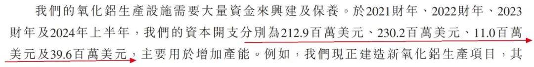 在一期、二期氧化铝项目先后投产的2021年、2022年,南山铝业国际的资本开支每年都在2亿美元以上,扩张产能所需要的资金之高由此可窥一二。