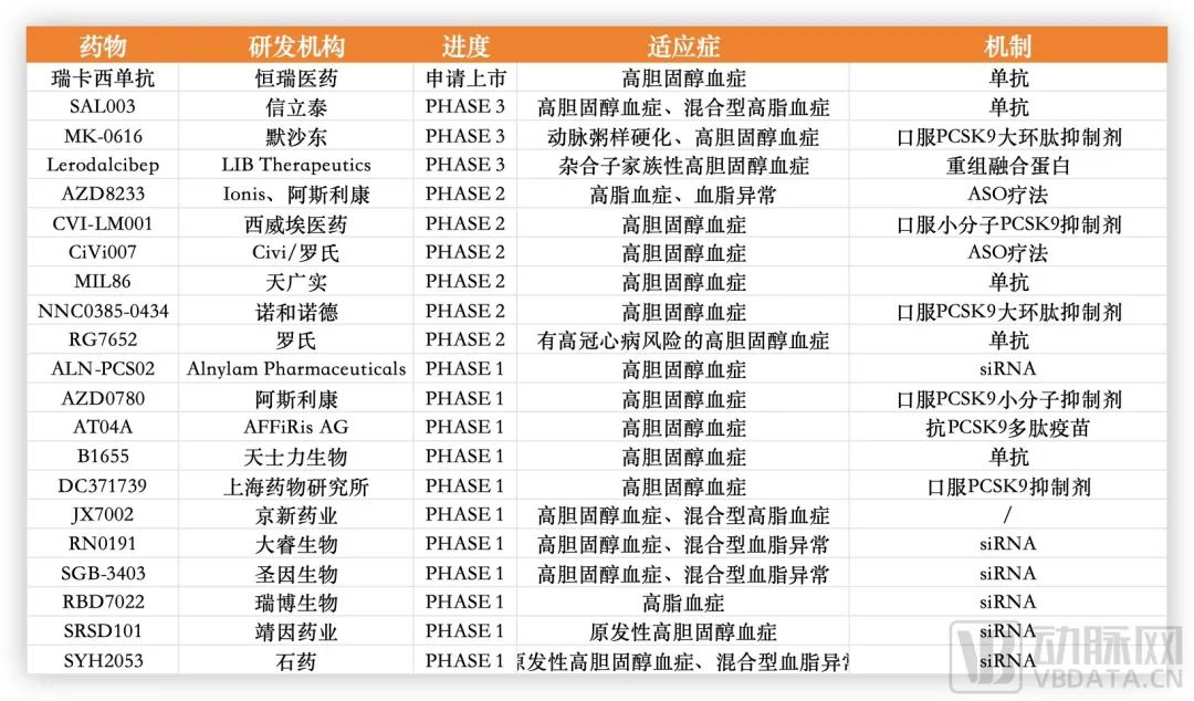 部分在研PCSK9药物,根据公开信息收集整理