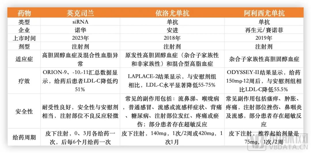 三款进口PCSK9药品对比,据公开信息收集整理