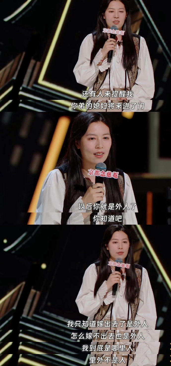 从连续不断的相关热搜话题,不难窥得“她视角”的强大话题收割力:于贞#rapper塌房塌男不塌女#的diss,成为乙游圈与嘻哈圈大战的最出圈注解;#杨笠 这是血肉在疯长的声音##杨笠 不是敢说是不知道这个不能说#为女脱口秀演员捂嘴困境发声;Echo“二姐的故事”虽在线下拿下最低票,却收获了两个热搜;小鹿穿着婚纱讲段子的形象刷屏……
