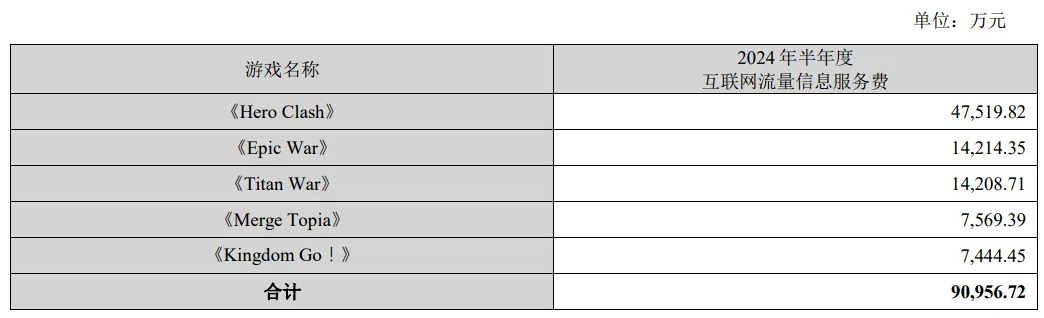 此前的半年报显示,冰川网络的主力产品每款都花费了过亿元的推广费用。公司上半年的销售费用达到14亿元,同比增长53%。其中《Hero Clash》《Epic War》《Titan War》《Merge Topia》《Kingdom Go!》合计花费了9亿元,占销售费用的65%。