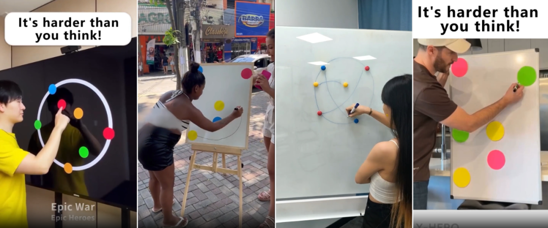 此类素材在许多版本上还加入了真人内容,通过展示不同人用不同形式玩彩点连线,体现玩法的流行和病毒传播。以下素材来自ADX海外版。