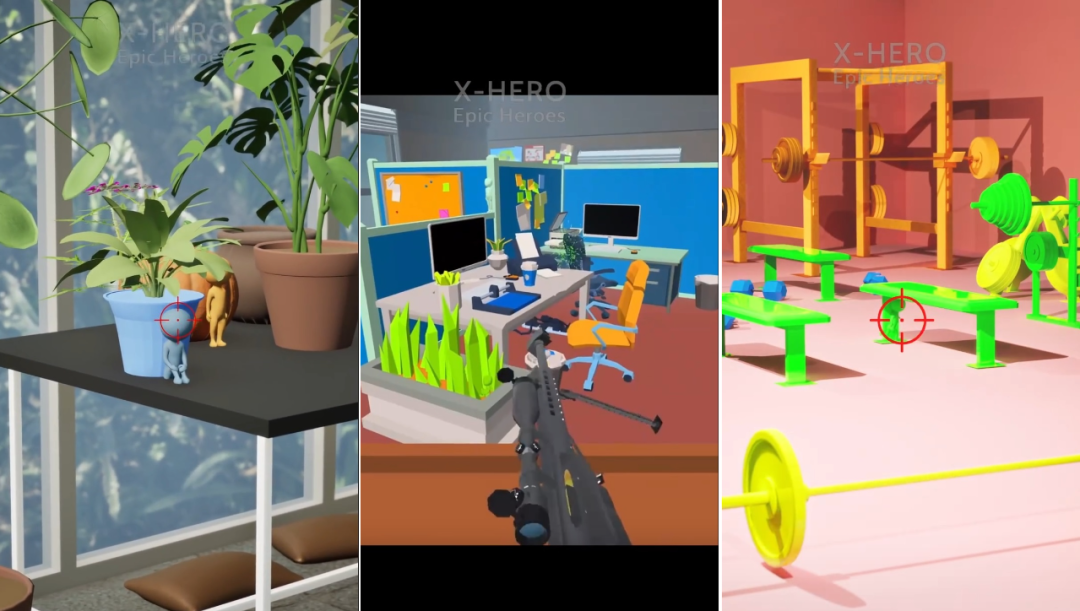 其二,狙击小人。此类素材让用户在如办公室、洗手间、健身房等日常场景中,找到隐藏其中的小人进行狙击。搭配“Find Everyone!”或“Can you find it?”的文案呈现。以下素材来自ADX海外版。