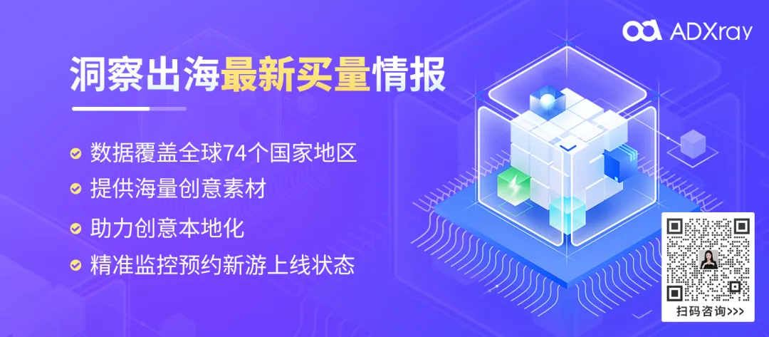 扫码免费试用ADX海外版,查看更多买量情报。ADX海外版已大幅升级,每月获取的海外投放游戏数超6万,新增120W+买量新素材行业领先。