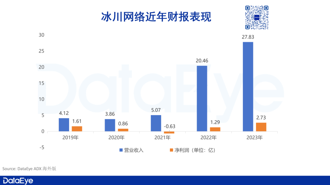 根据公开数据显示,冰川网络在近5年实现了财报表现上的跃升。在2019年时,这家公司收入4.12亿元,净利润达到1.61亿元。到了2020年,收入略微下滑,净利润减半。在2021年,冰川网络近五年净利润首次出现亏损,虽然收入达到5.07亿,但净利润亏损0.63亿。