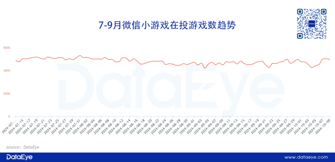 投放游戏数方面,9月日均参与投放的微信小游戏与8月相比有所下滑,特别在莅临国庆假期前夕部分小游戏停止投放,体现出营销策略分化,部分产品避免与头部厂商抢量,选择错峰营销,避其锋芒。