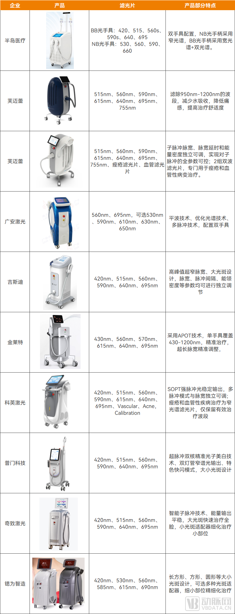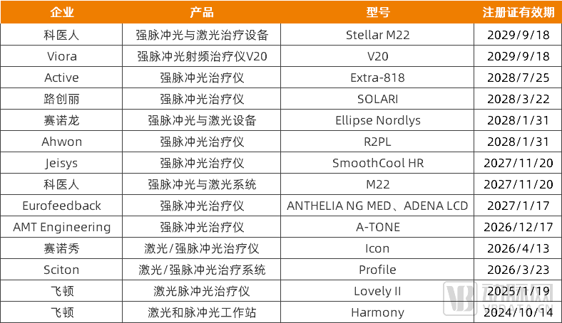 部分国产强脉冲光治疗仪,资料来源:企业官网、公开报道