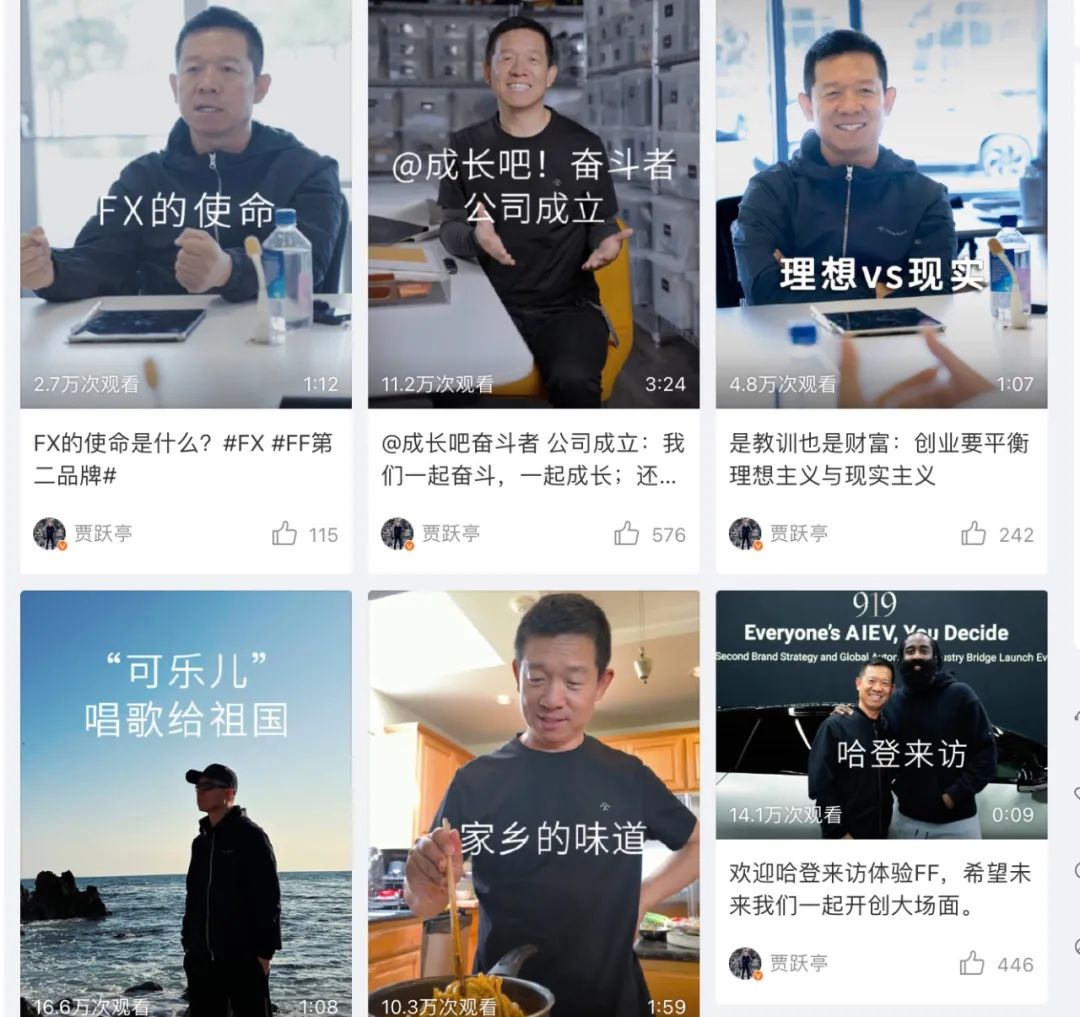 或许是看到雷军靠自身IP,侧面推动了造车事业,贾跃亭也试图模仿雷军,通过打造个人IP来博关注。