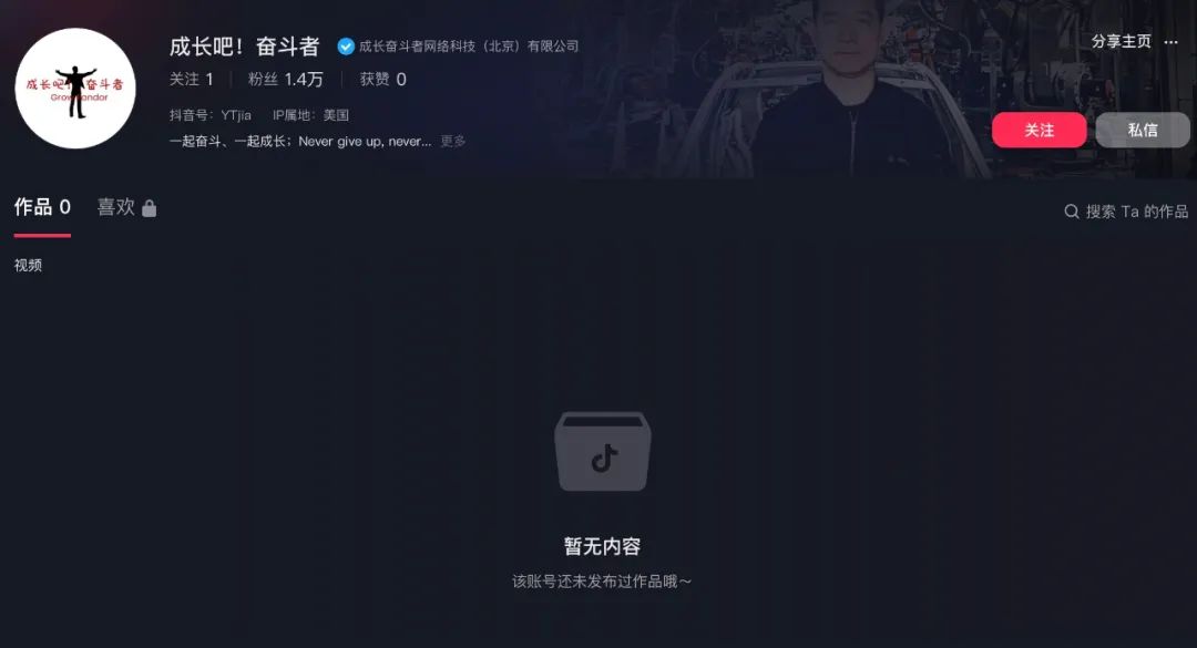 截至10月16日,“成长吧奋斗者”抖音账号的粉丝量仅为1.4万。据了解,该账号曾发布相关视频,获赞2.2万左右,但视频现已被删除。另外,此前其商品橱窗曾推出了199件商品,目前这些商品也已被清空。