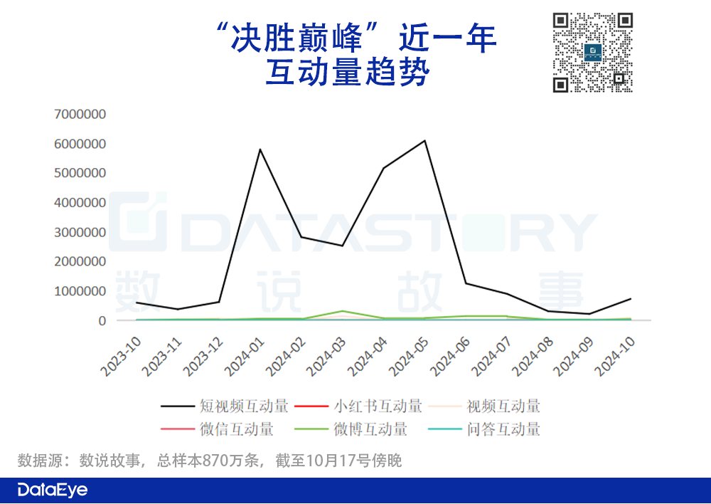 而在今年10月,官方发起 #决胜巅峰全英雄全皮肤免费#相关营销活动,短视频平台互动量有小幅度提升。【DataEye研究院观点】