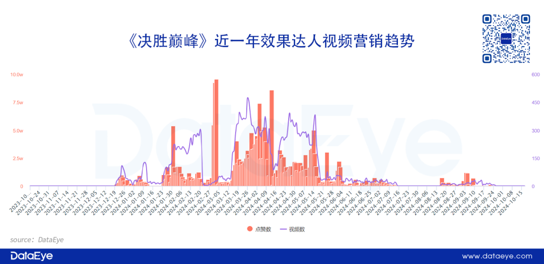 相比于达人内容运营,《决胜巅峰》在达人直播方面投入波动大,可能是因为《王者荣耀》在24年1月可以在抖音直播,《决胜巅峰》此时并未正式上线,项目组采用了避其锋芒的策略。