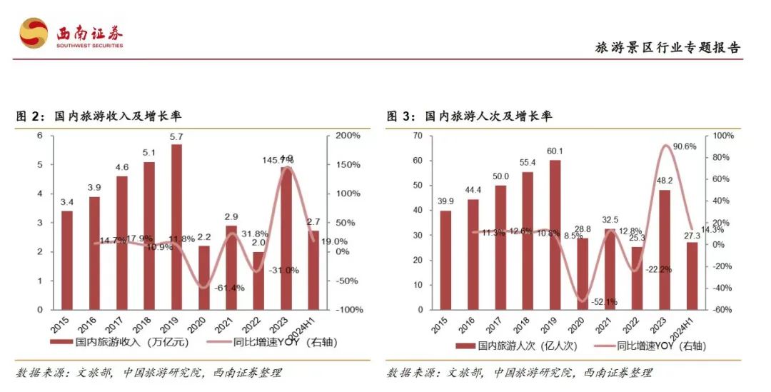 尤其是在国庆假期之后的旅游淡季,双11的独特价值日益凸显。一方面,今年的旅游市场并不如预期一般火热。西南证券发布的研报显示,2024年上半年,受暴雨等极端天气影响,国内旅游收入及国内旅游人次增速不及全年增速预期。按照中国旅游研究院的预测,2024年国内旅游出游人数、国内旅游收入将分别同比增长25%、23%。假设能够完成,国内旅游收入占GDP的比重为4.6%,与2019年的5.8%相比仍有差距。