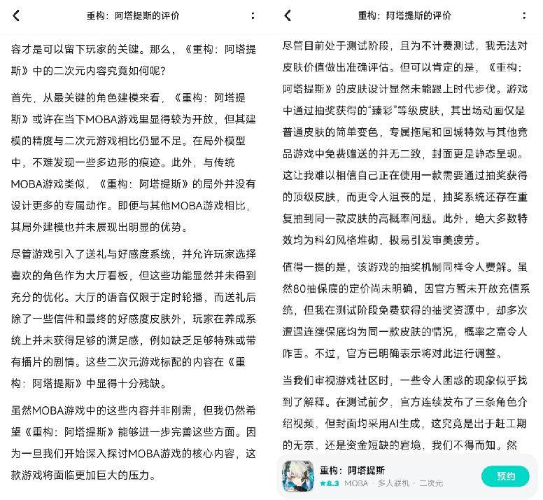 然而,在10月16日启动的“原基测试”阶段,玩家反馈揭示出一些问题。尽管内容层面进行了优化,但这些改进似乎并未被玩家充分感知,也未能精准触及MOBA玩家的核心需求。特别值得注意的是,TapTap平台上热度最高的评论来自一位撰写了3000字测评的玩家,该玩家指出游戏在“二次元”元素上的体验尚显不足,同时在“MOBA”玩法方面仍存在待优化的空间。