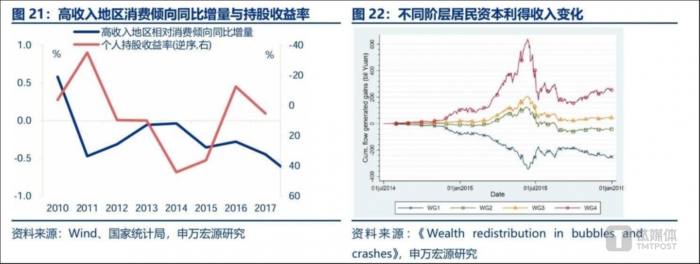 此外,2015年低收入群体的资本利得为负,消费倾向走弱。高收入居民资本利得为正,但消费倾向继续回落,“疯牛”时期股市财富效应明显弱化。