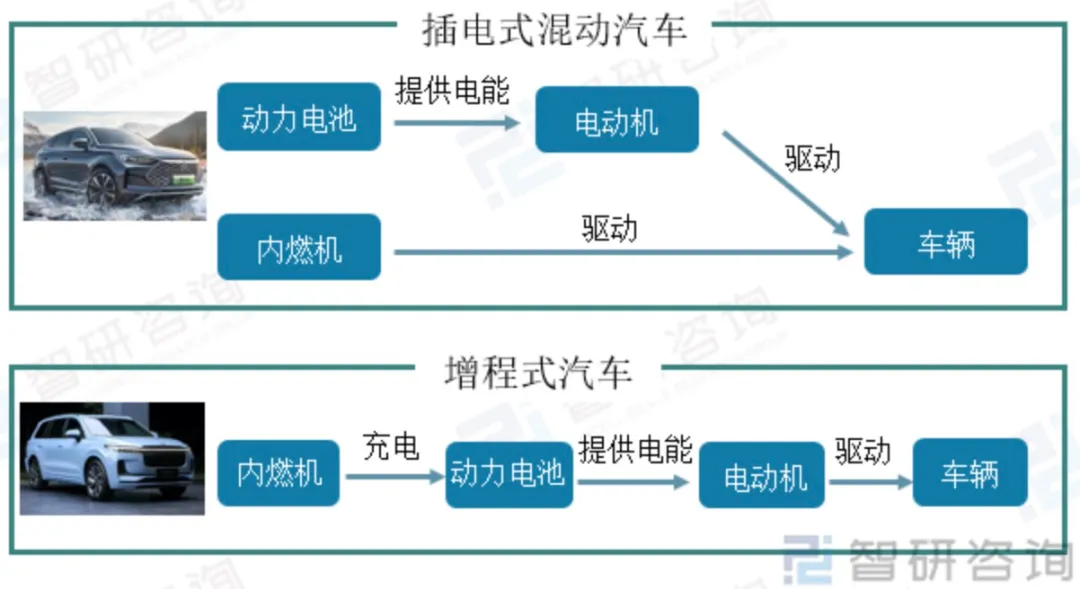 图/插混与增程汽车的区别 来源/智研咨询 新能源观截图